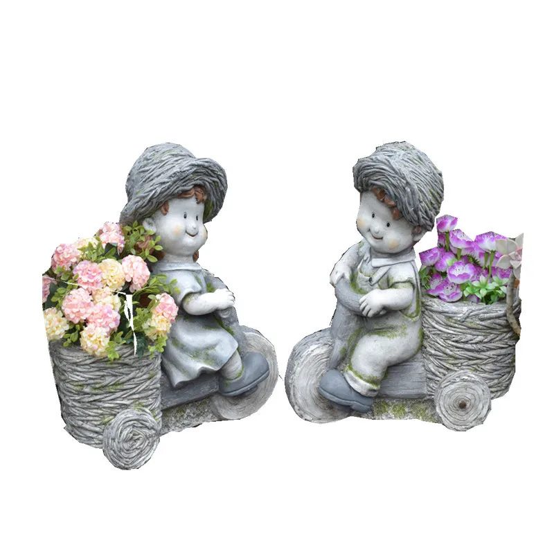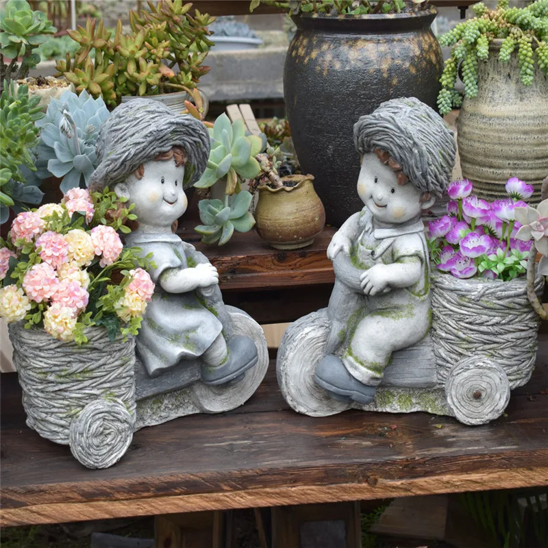 Discount Americana Vintage Old Cute Boy And Girl Cart Flower Pot Room Study Hallway Home Plant Pot Outdoor G