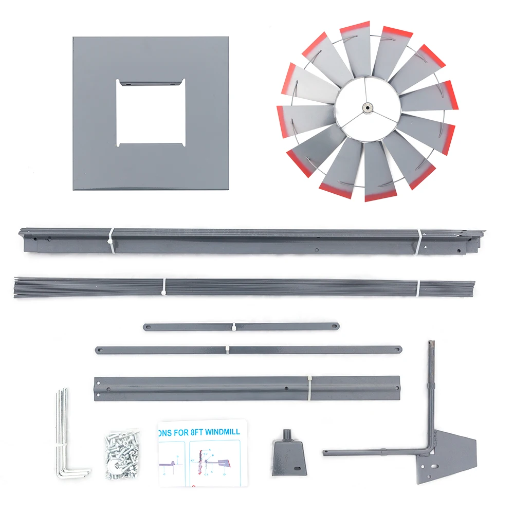 Free Shipping 8FT Weather Resistant Yard Garden Windmill Gray Red Decoration Home Yard Garden Decor