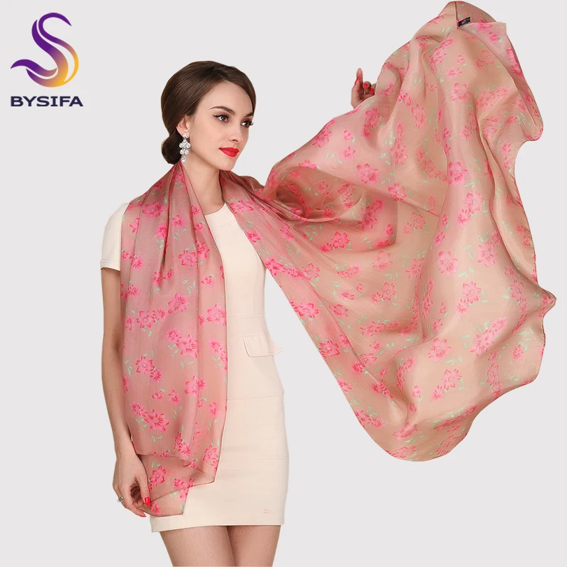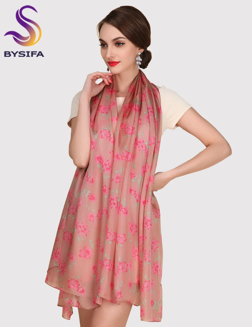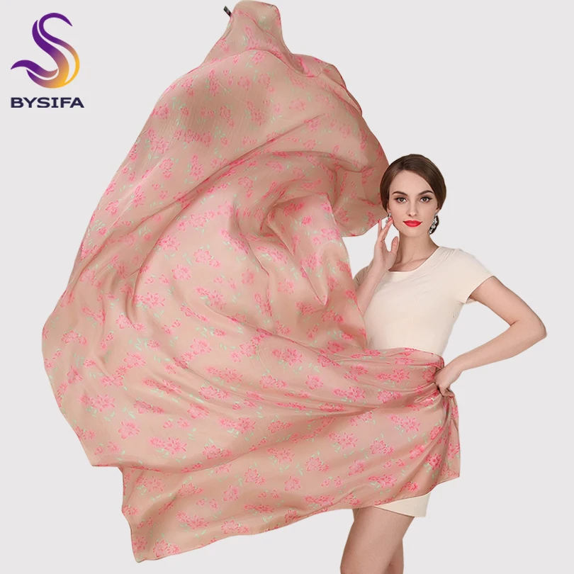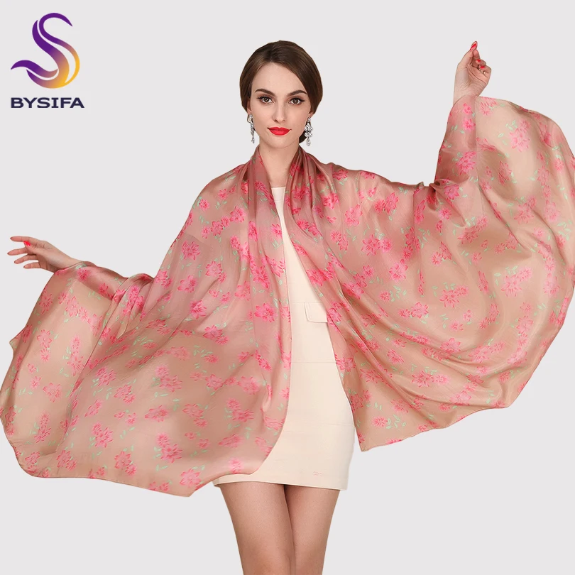Best [BYSIFA] Utralarge Women Fashion Coffee Pink Long Silk Scarf Spring Autumn Ladies's Apparel Accessories Scarves Wraps 200*110cm
