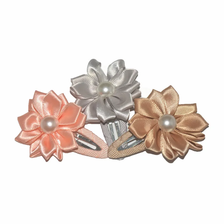 Discount 30 pcs/ lot 5cm ribbon satin flower statin pearl flower with ribbon clip for apparel hair accessories headwear