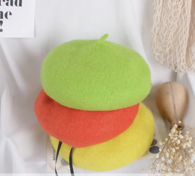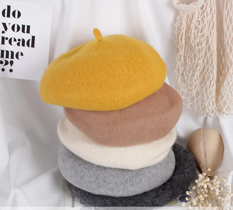 Buy Now Fashion Elegant Children Girls Wool Beret Hat Solid Warm Winter Hats for Girl Kids 2020 Painter Cap 16 Color Apparel Accessories